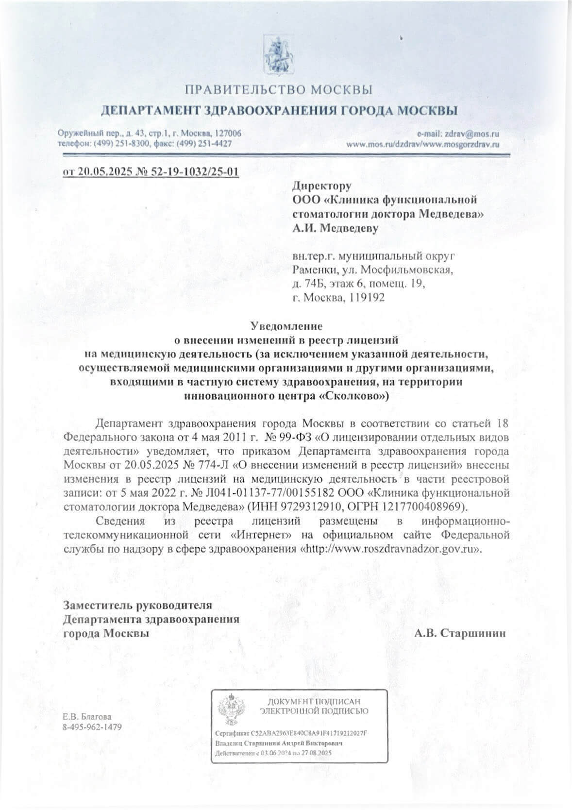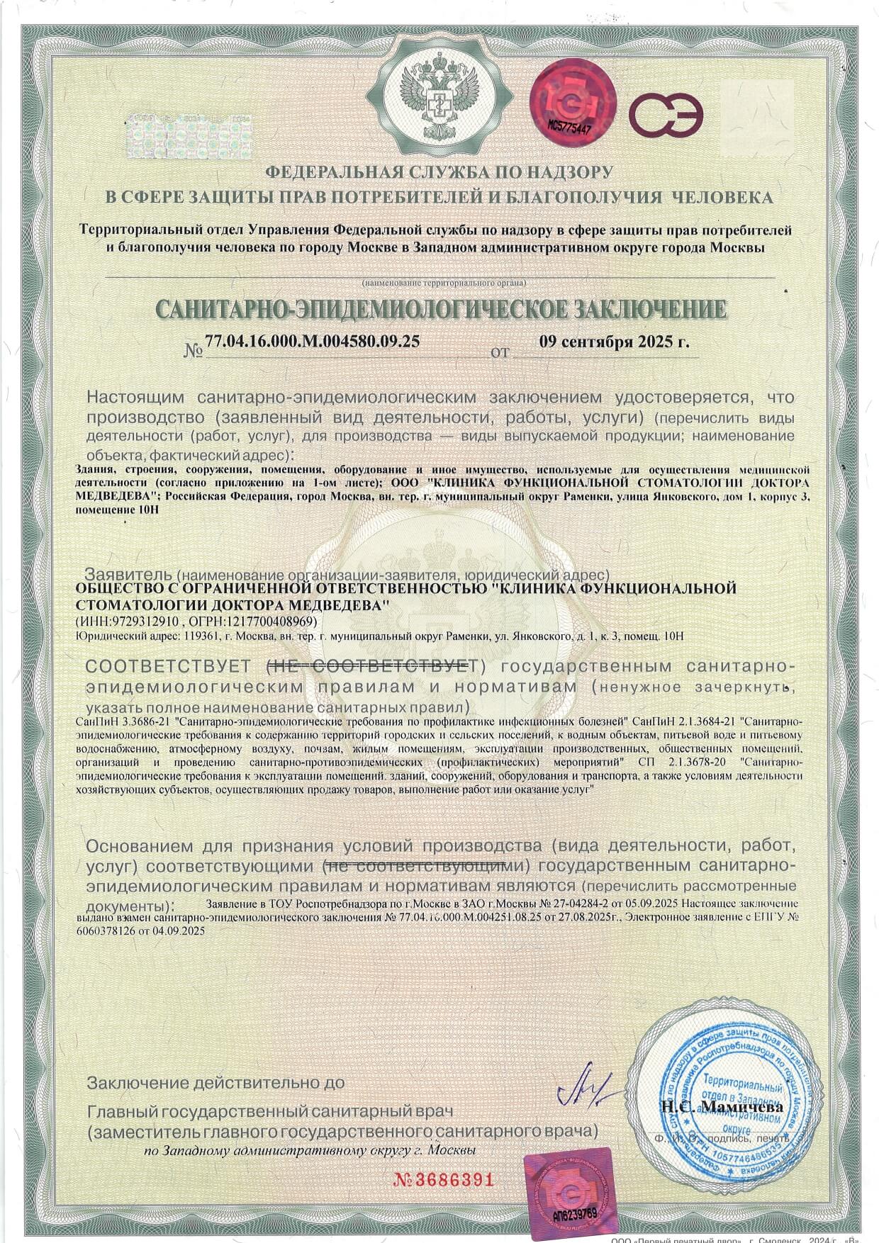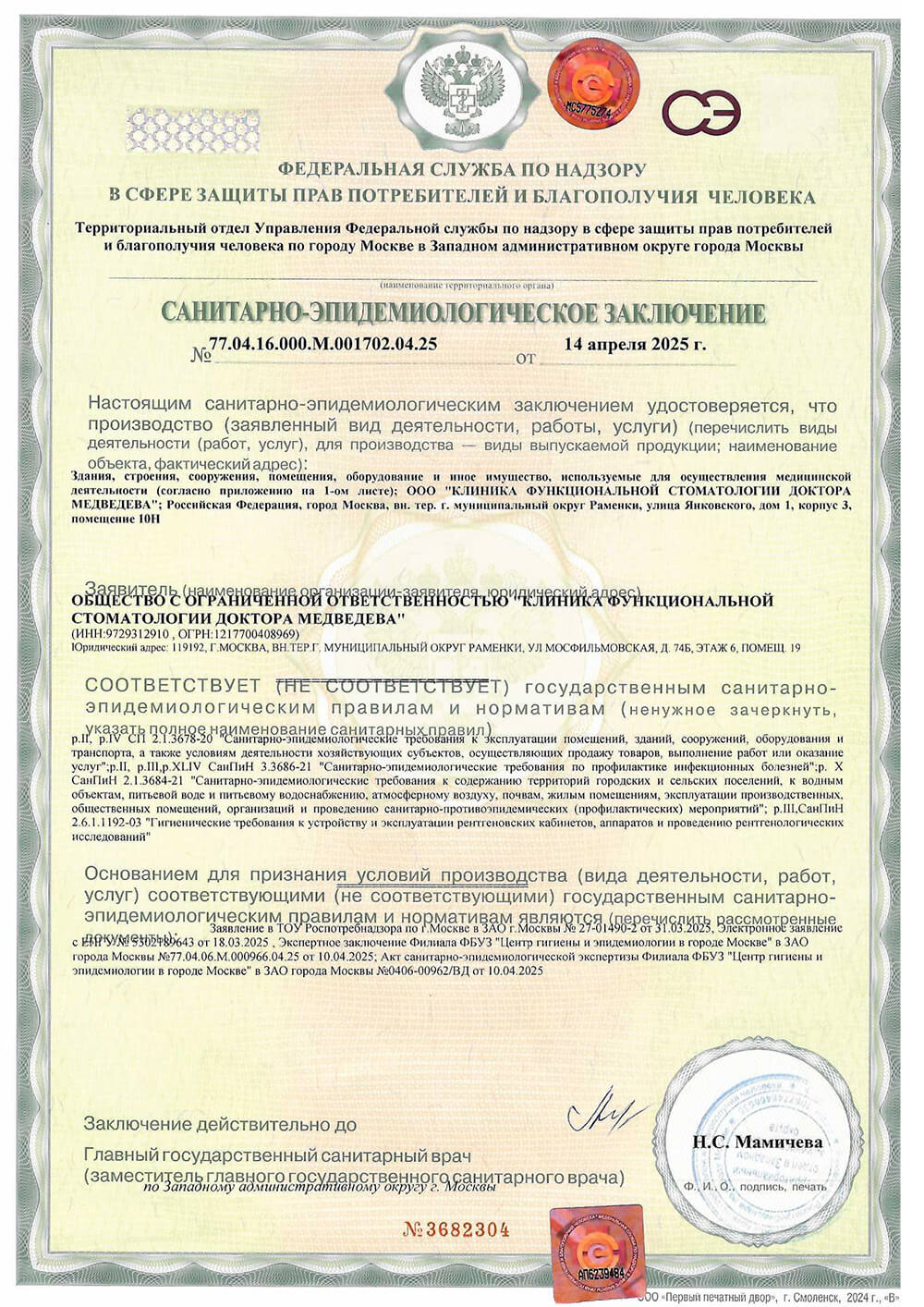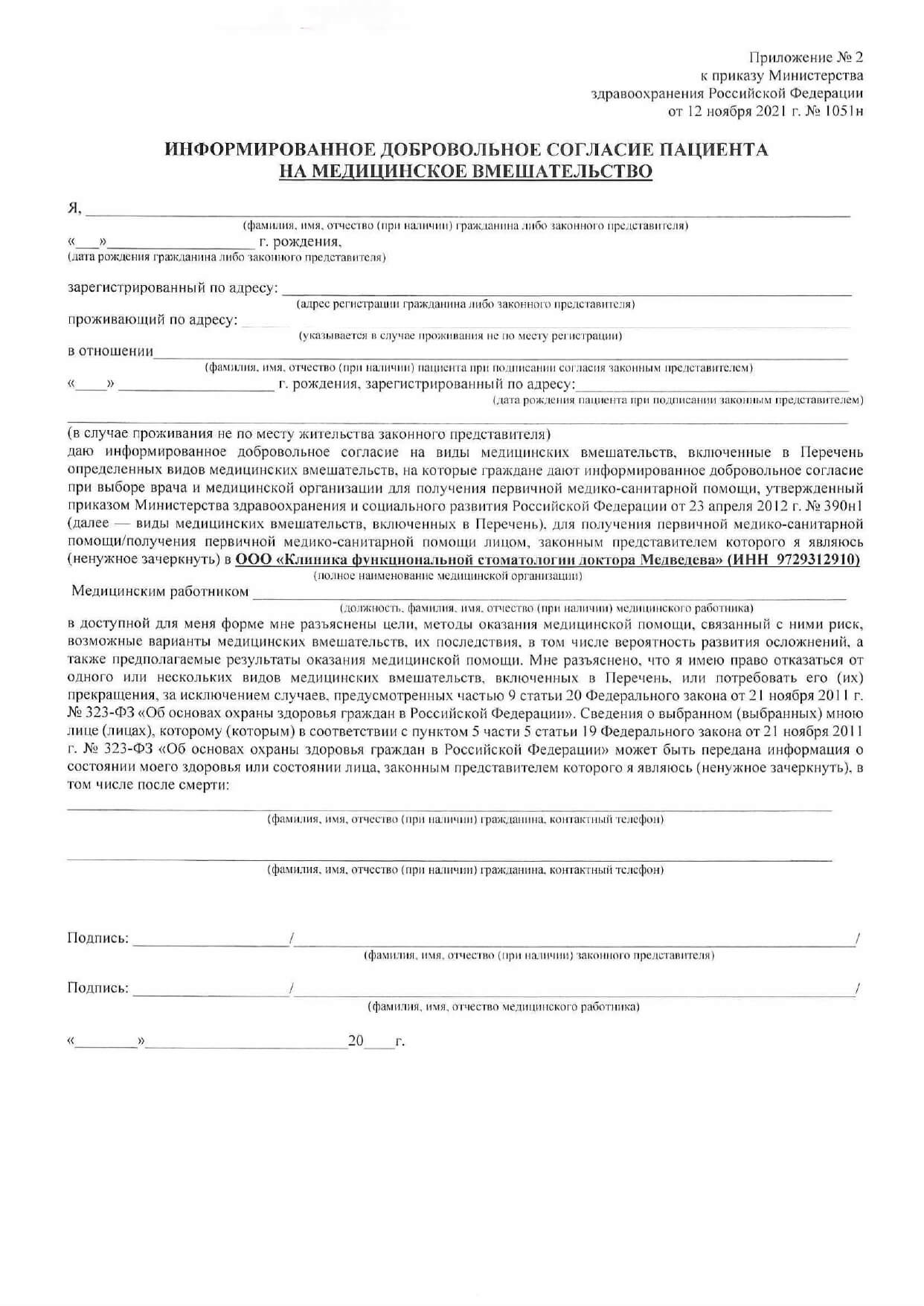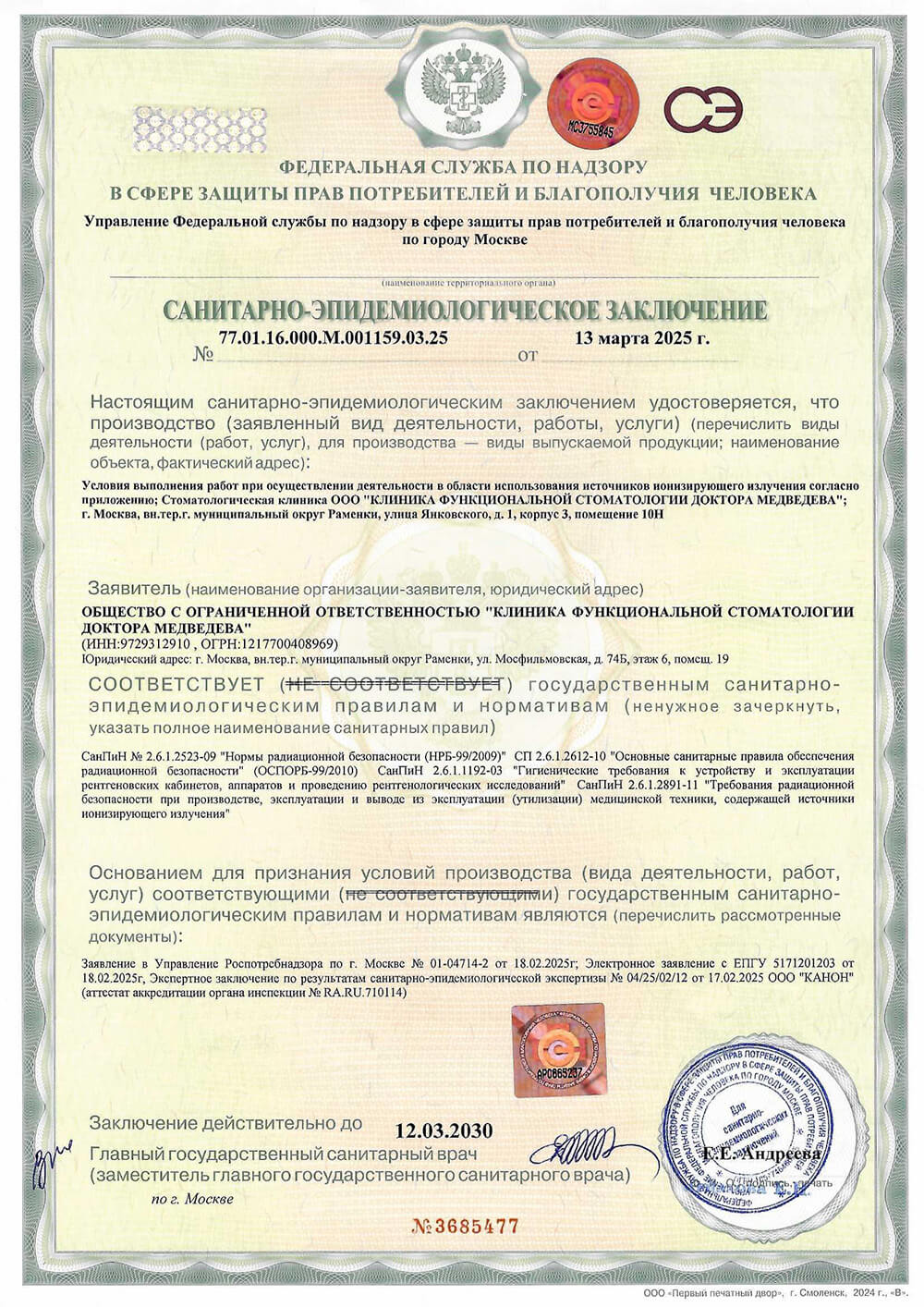 Полное наименование организации: | ООО «Клиника функциональной стоматологии доктора Медведева» |