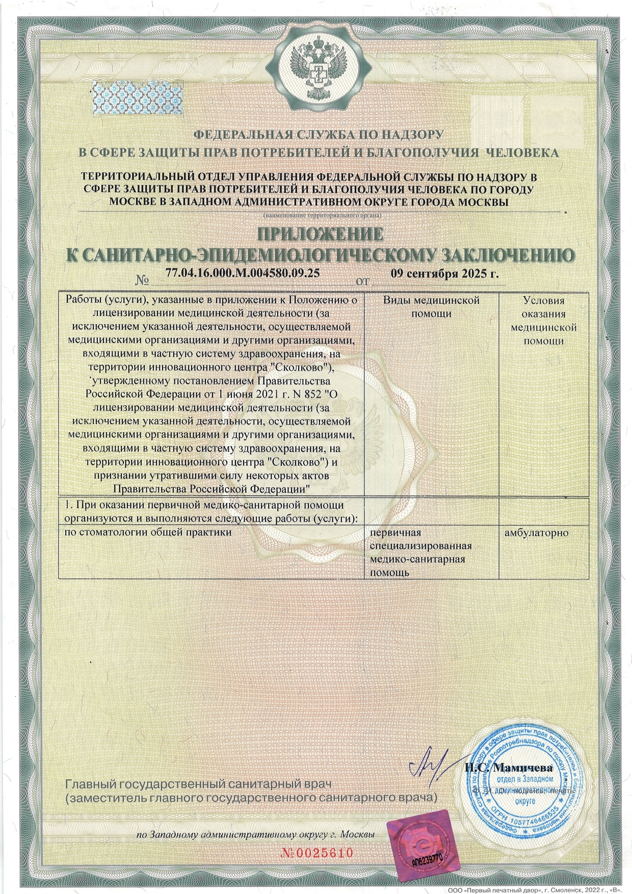 Код и наименование вида деятельности | 86.23 Стоматологическая практика |
