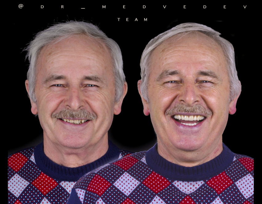 Пациент комфортно пережевывает пищу и широко улыбается, не чувствуя при этом дискомфорт.
